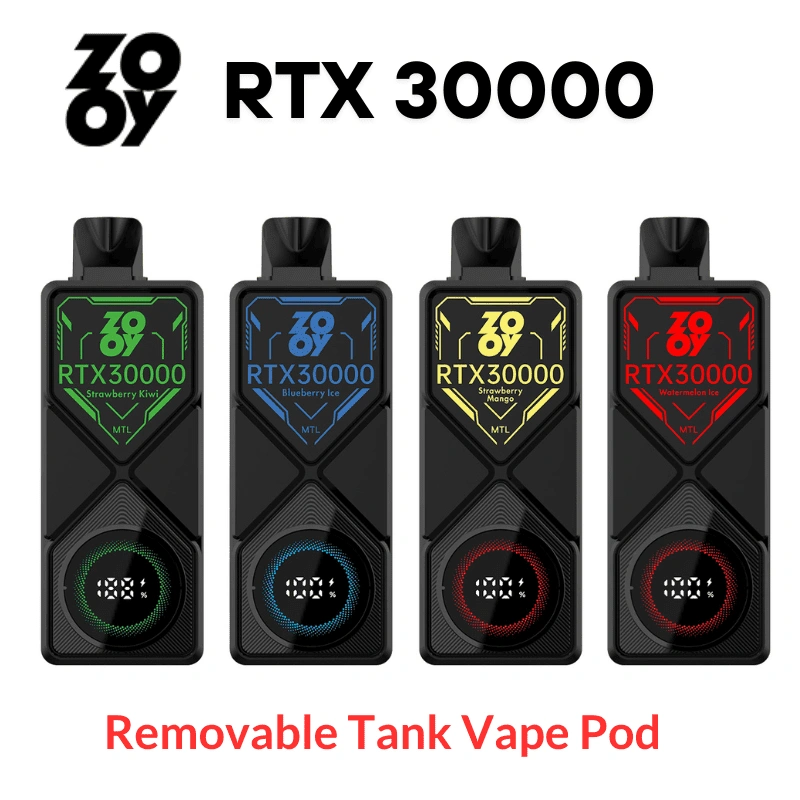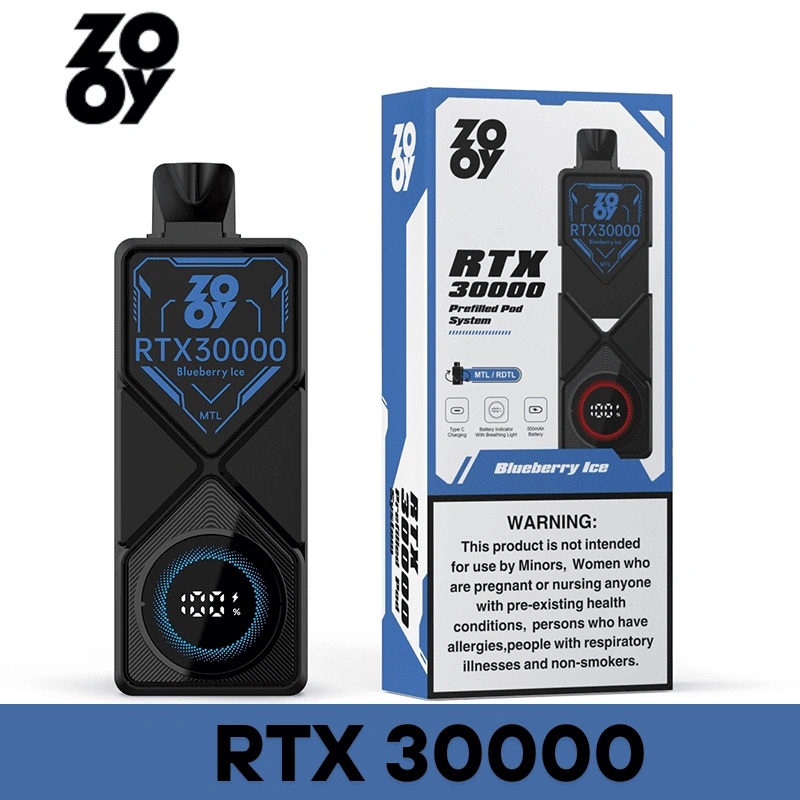Zooy RTX 30000 Puff Austauschbarer Tank Smart Screen Vorgefüllt E-Liquid Closed Pod verfügbares Einweg-Kit
